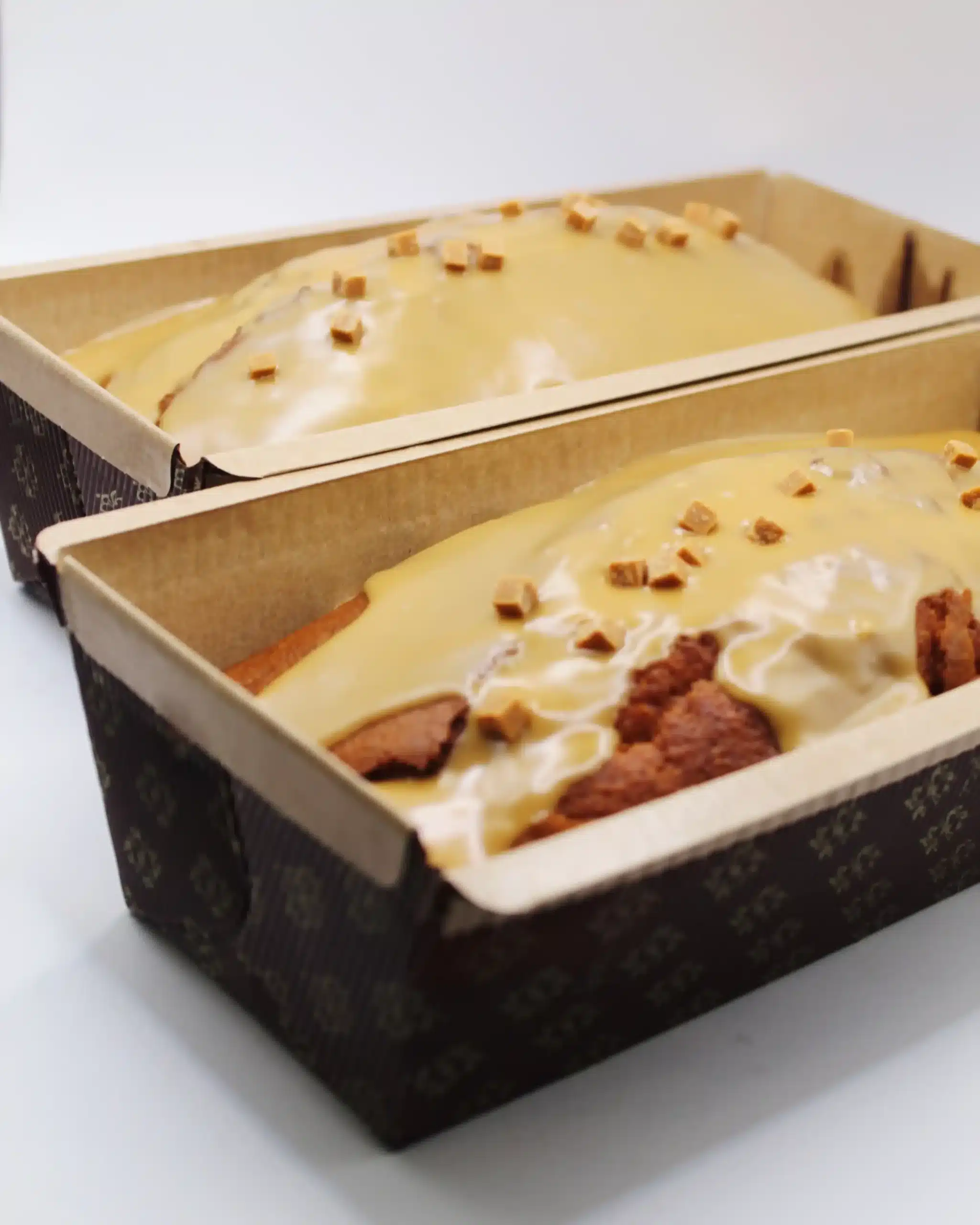 Delicioso y húmedo bizcocho de calabaza y naranja con un toque de especias y rematado con un riquísimo glaseado de chocolate gold y mini toffees. Este bizcocho de temporada es ideal para acompañar un café en una tarde de otoño. 750 gr.